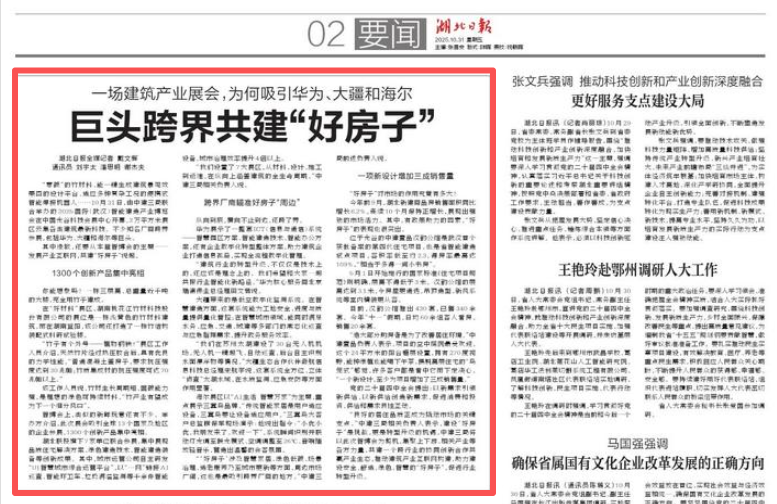 湖北日?qǐng)?bào):一場(chǎng)建筑產(chǎn)業(yè)展會(huì),為何吸引華為、大疆和海爾巨頭跨界共建“好房子”